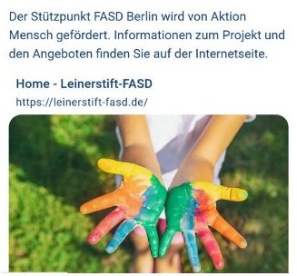 Der ‚Leinerstift e. V.‘ ist ein bundesweit aktiver sozialer Träger mit einem Sitz in Neukölln und hat im Oktober im Bezirk Neukölln seinen ‚Stützpunkt FASD‘ eröffnet. In einem von Aktion Mensch geförderten Projekt spezielisiert sich der Stützpunkt auf das Therma ‚FASD‘. Deshalb gehen wir verstärkt in den fachlichen Austausch und verweisen gerne auf die vielfältigen…